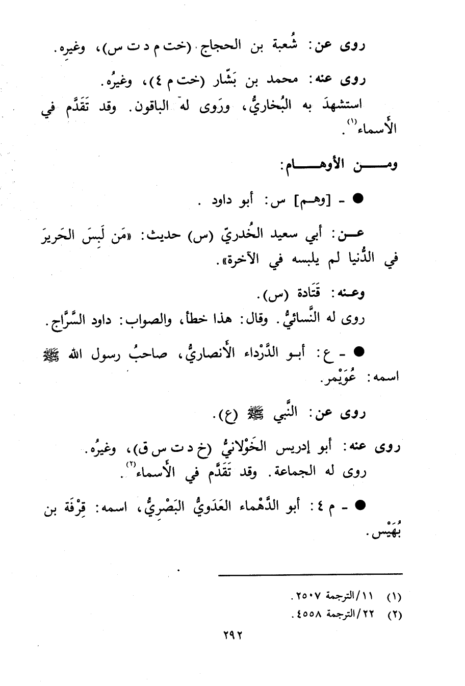 عن: أبي سَعِيد الخُدْرِيّ (س) حديث: من لبس الحرير فِي الدُّنْيَا لَمْ يَلْبَسْهُ فِي الآخِرَةِ.