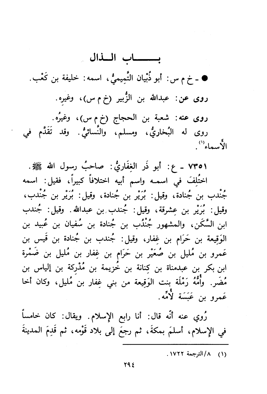 7351 - ع: أَبُو ذر الغفاري: صاحب رَسُول اللَّهِ صلى الله عليه وسَلَّمَ.