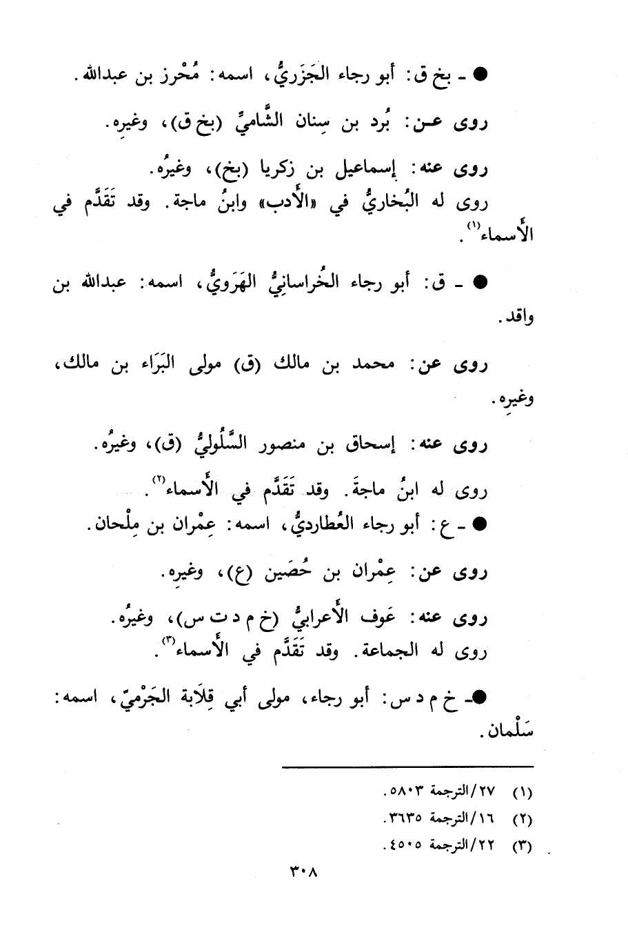 • ق: أَبُو رجاء الخراساني الهروي، اسمه: عَبد اللَّه بن واقد.