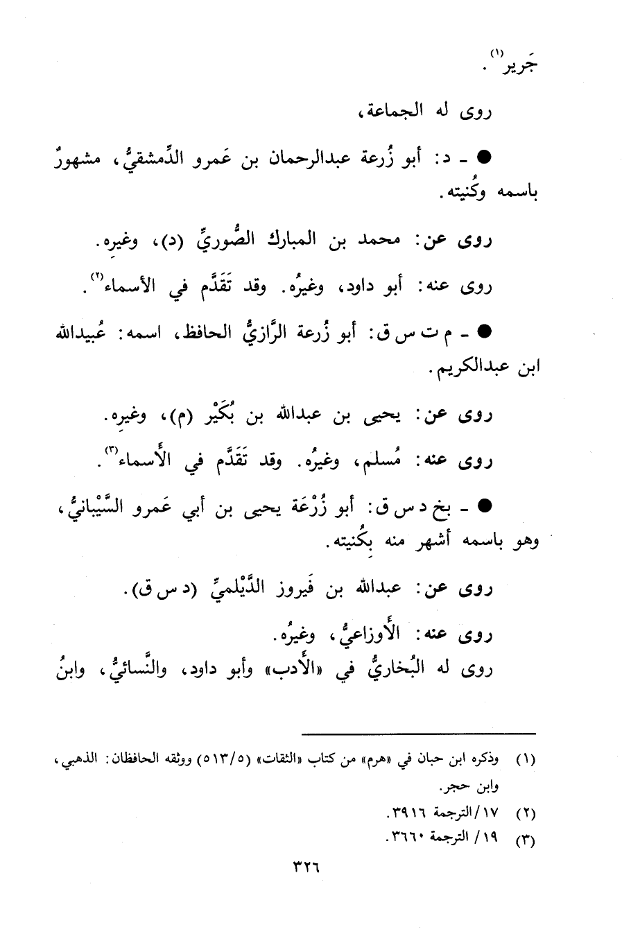 • د: أَبُو زُرْعَة عَبْدُ الرَّحْمَنِ بْنُ عَمْرو الدمشقي، مشهور باسمه وكنيته.