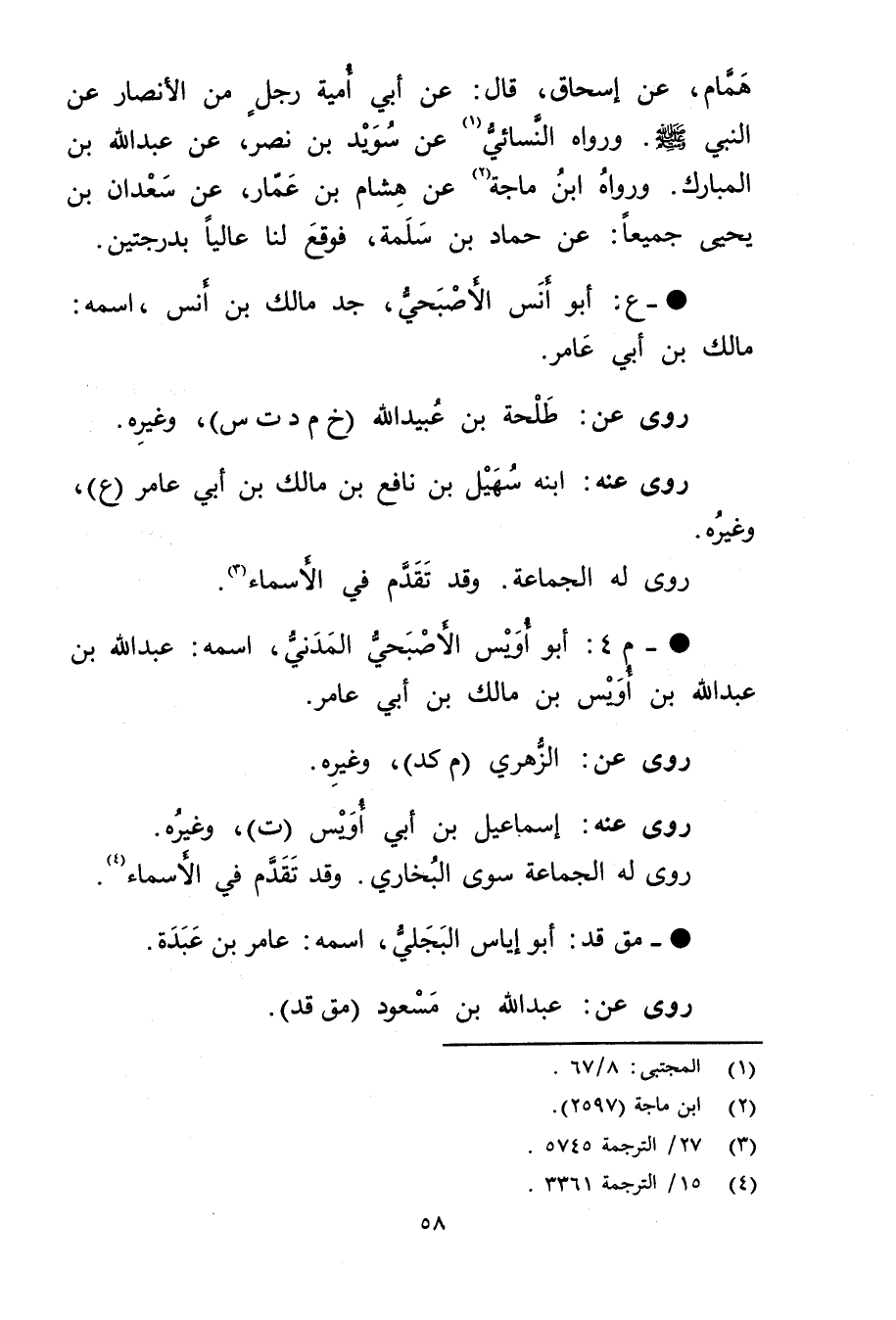 • م 4: أَبُو أويس الأصبحي المدني، اسمه: عَبد اللَّه بن عَبد اللَّهِ بن أويس بْن مالك بْن أَبي عامر.
