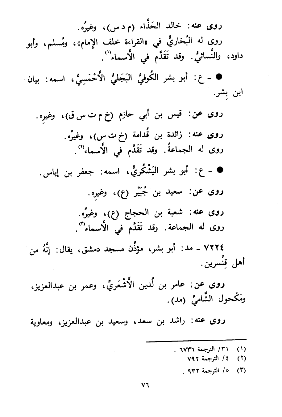 • ع: أَبُو بشر الكوفي البجلي الأحمسي، اسمه: بيان ابن بشر.
