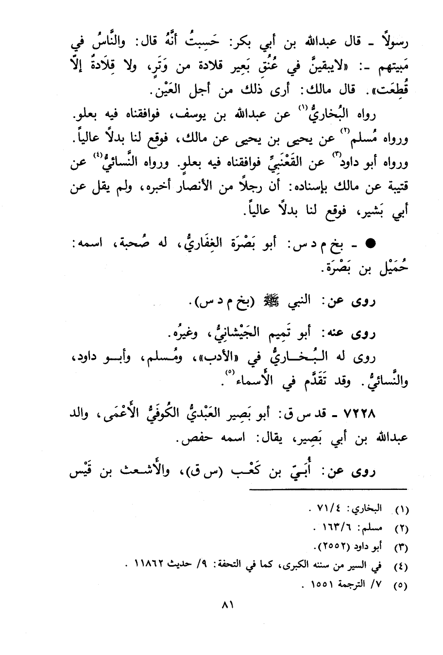 • بخ م د س: أَبُو بصرة الغفاري، لهُ صُحبَةٌ، اسمه: حميل بْن بصرة.