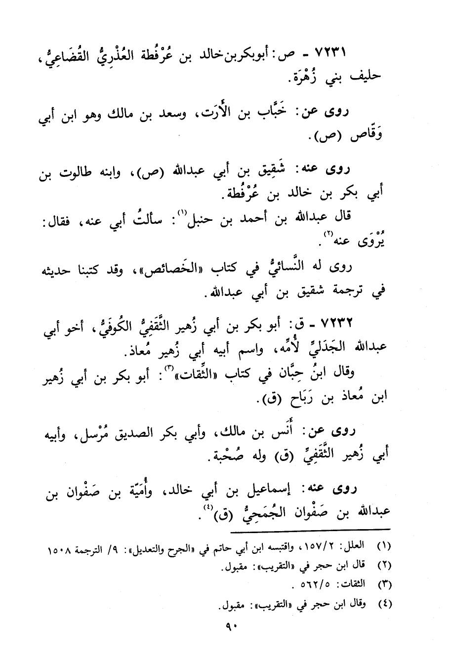 7232 - ق: أَبُو بكر بن أَبي زهير الثقفي الكوفي، أخو أَبِي عَبد اللَّه الجدلي لأمه، واسم أبيه أَبِي زهير معاذ.