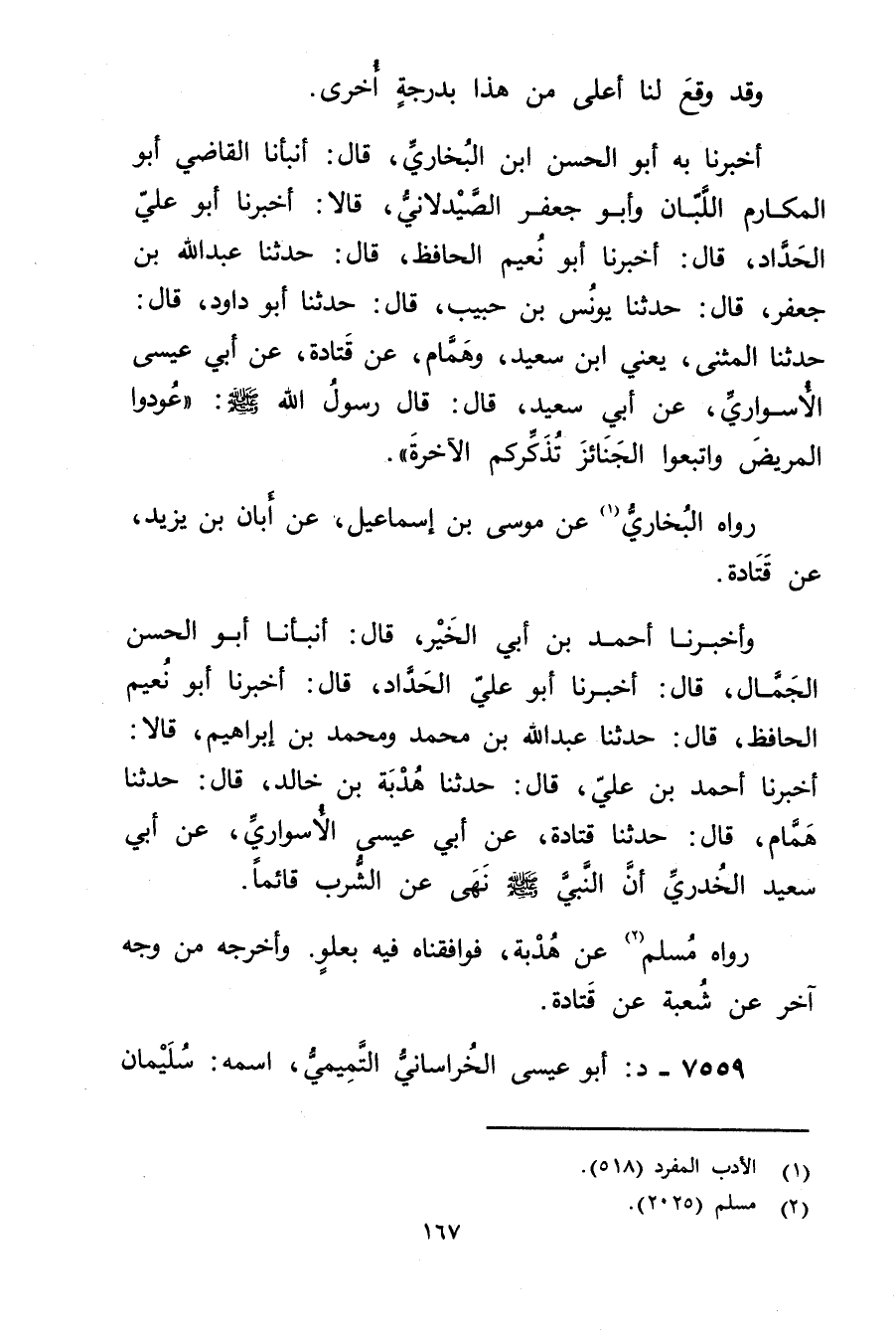 رواه مسلم (2) عن هدبة، فوافقناه فِيهِ بعلو. وأخرجه من وجه آخر عَنْ شعبة عن قتادة.