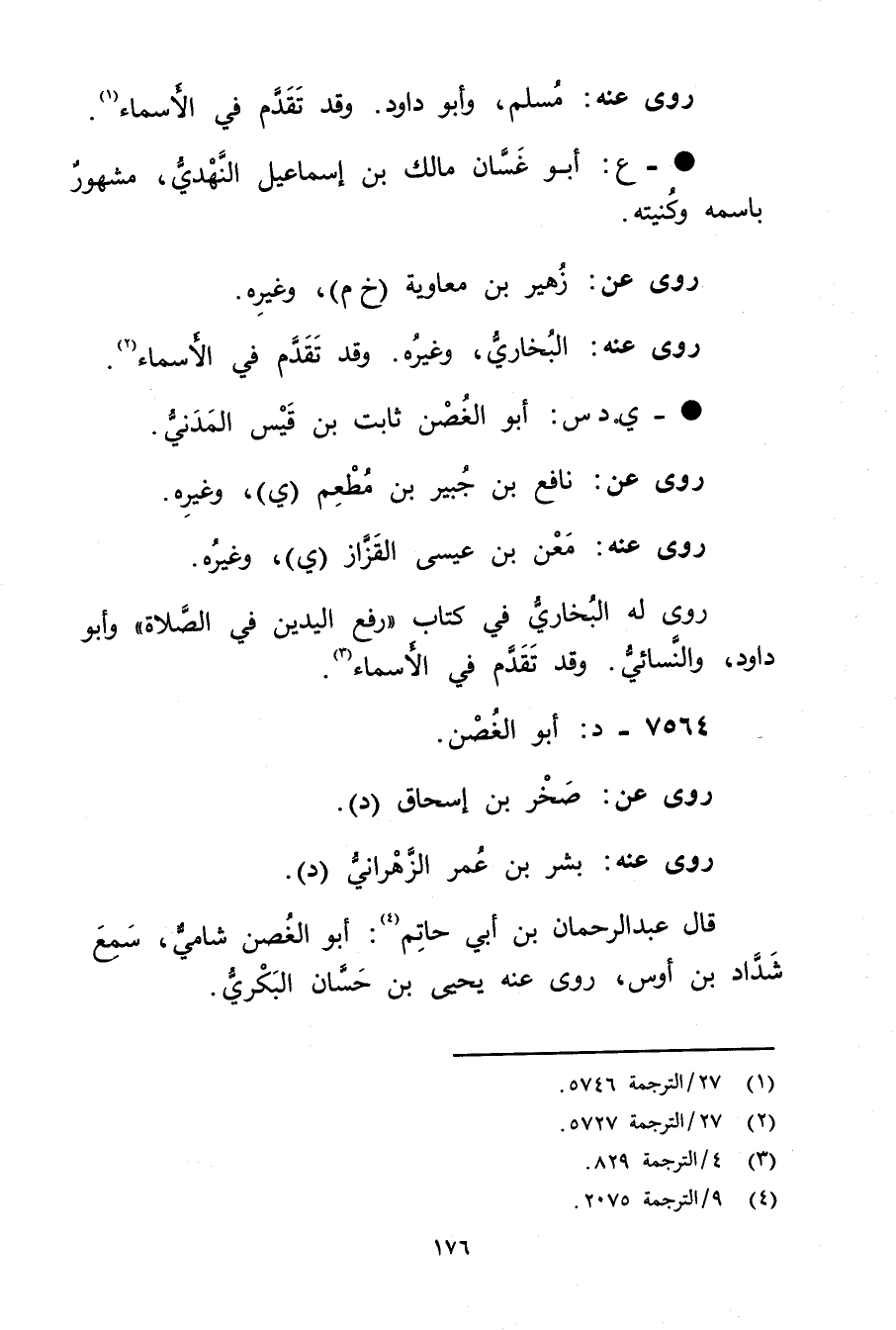 • ع: أَبُو غَسَّانَ مَالِكُ بْنُ إِسْمَاعِيلُ النهدي، مشهور باسمه وكنيته.