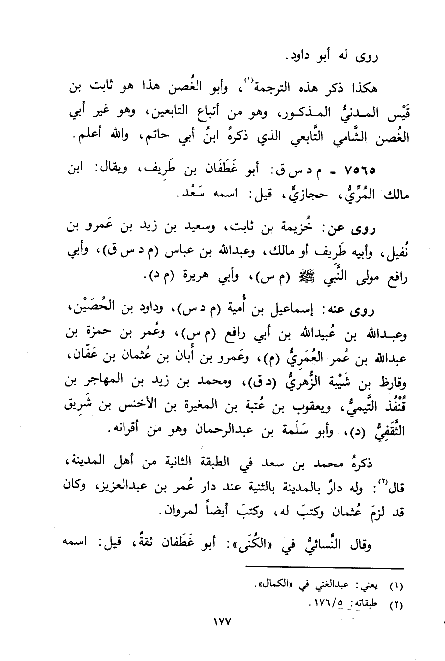 7565 - م د س ق: أَبُو غطفان بن طريف، ويُقال: ابن مالك المري، حجازي، قِيلَ: اسمه سعد.