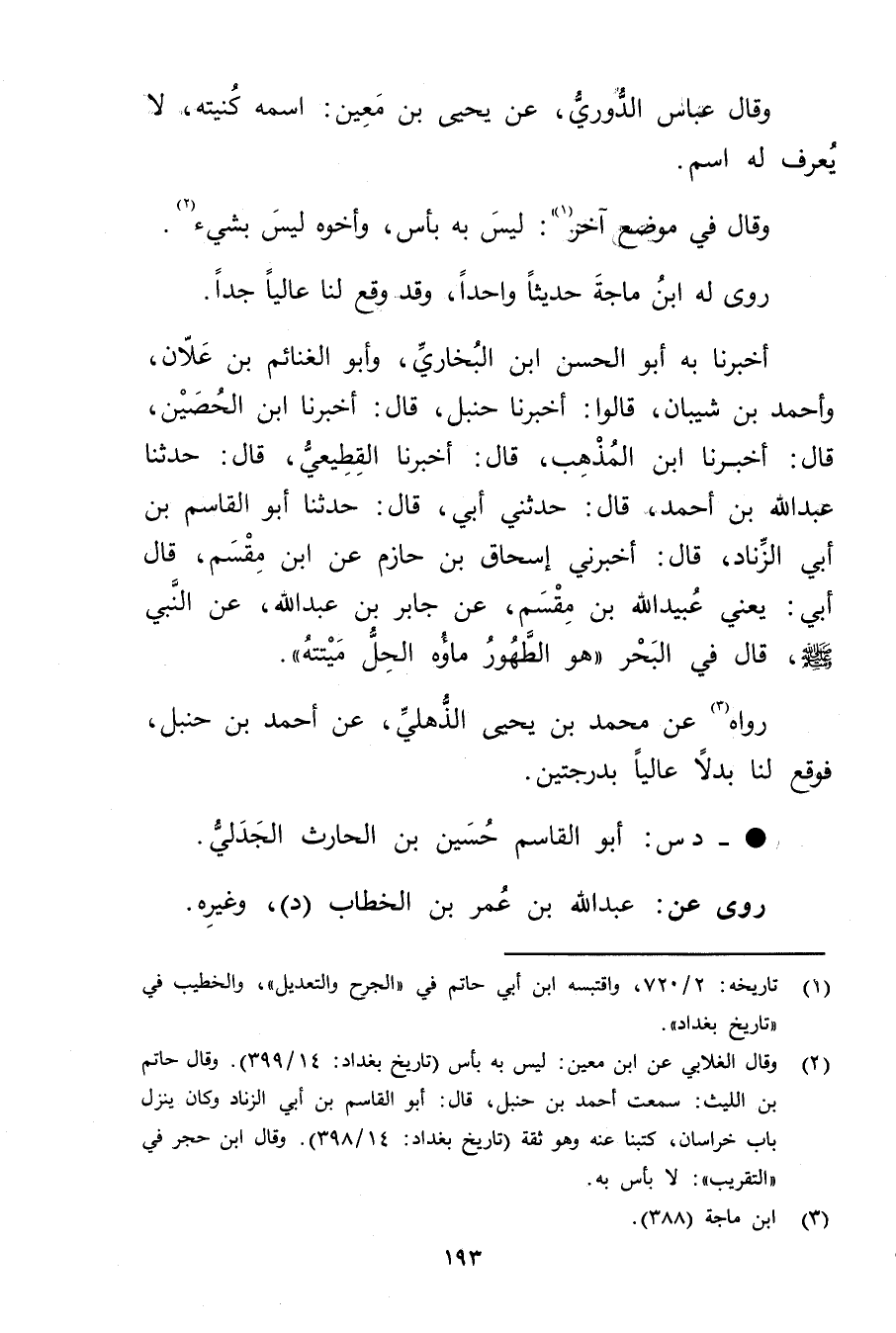 (1) تاريخه: 2 / 720، واقتبسه ابن أَبي حاتم في " الجرح والتعديل"، والخطيب في " تاريخ بغداد.