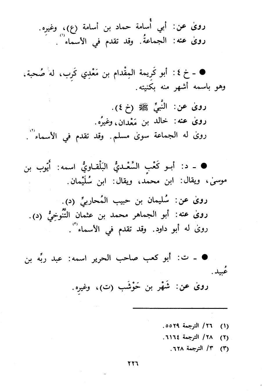 • خ 4: أَبُو كريمة المقدام بْن مَعْدِي كَرِب، لَهُ صحبة. وهو باسمه أشهر منه بكنيته.