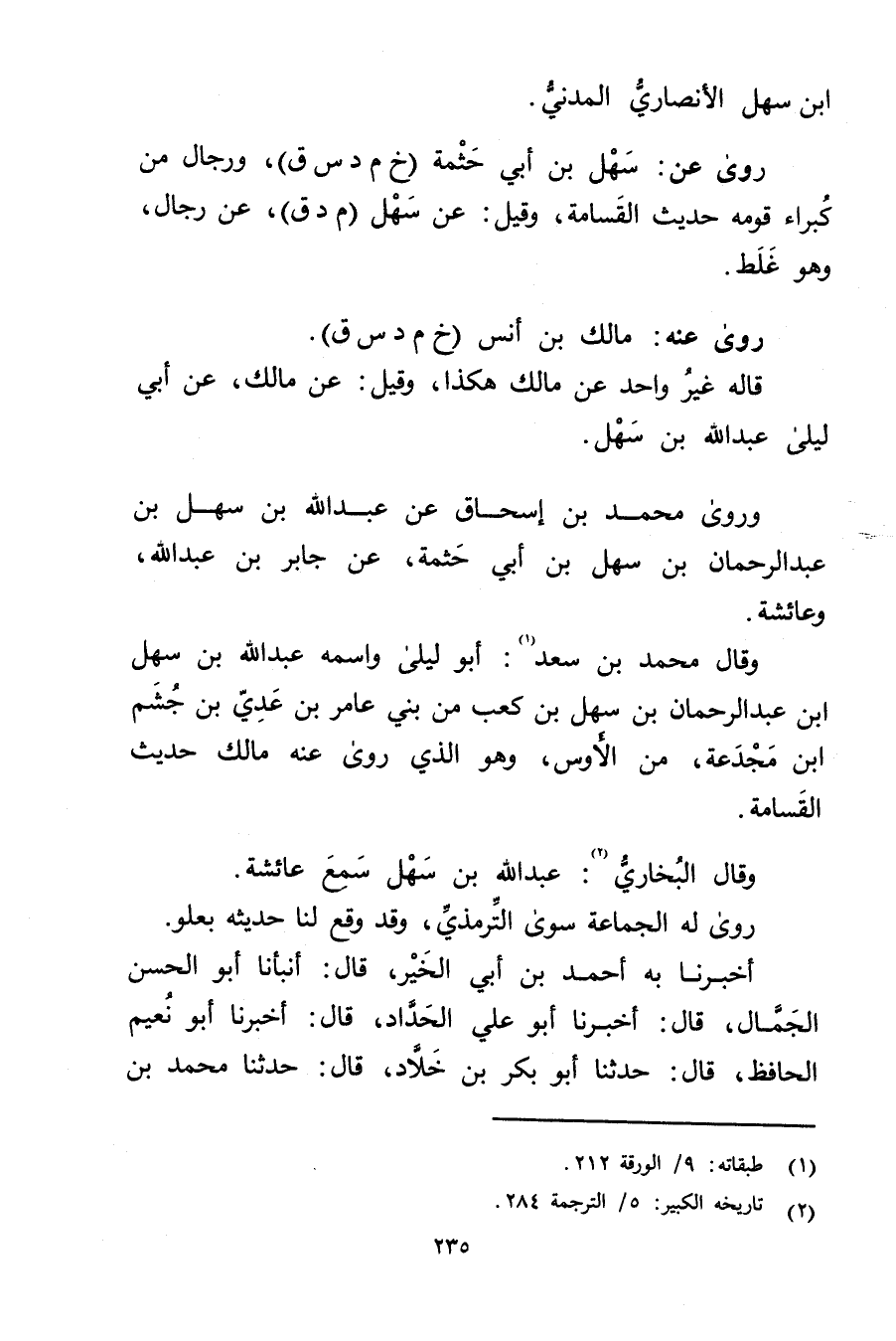 وَقَال مُحَمَّد بْن سعد (1) : أَبُو ليلى واسمه عَبد اللَّه بْن سهل ابن عَبْد الرَّحْمَنِ بْن سهل بْن كعب من بني عامر بْن عدي بن جشم ابن مجدعة، من الأوس، وهو الَّذِي روى عنه مالك حديث القسامة.