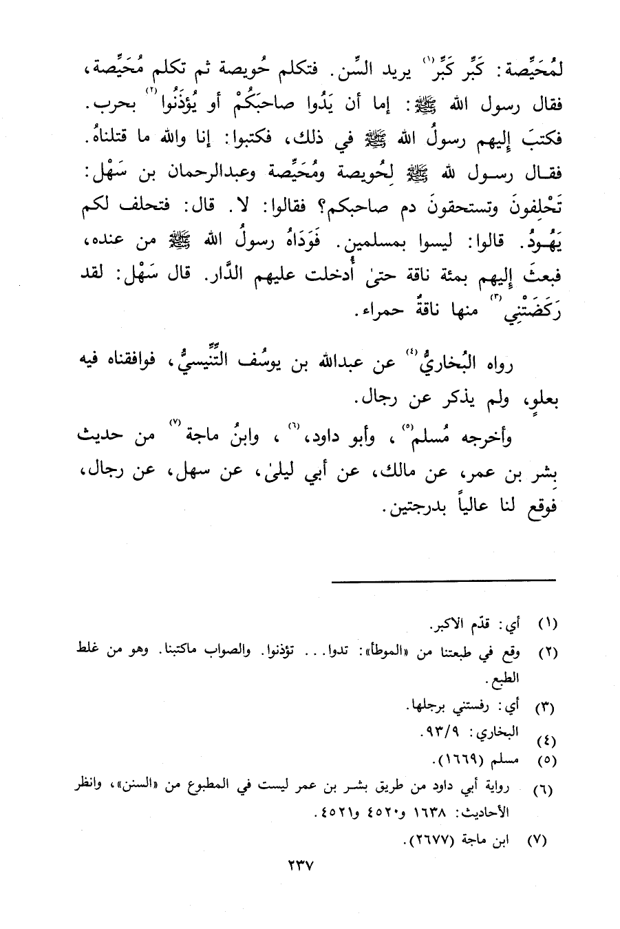 وأخرجه مسلم (5) ، وأبو داود (6) ، وابن ماجه (7) من حديث بشر بْن عُمَر، عن مالك، عَن أَبِي ليلى، عن سهل، عن رجال، فوقع لنا عاليا بدرجتين.
