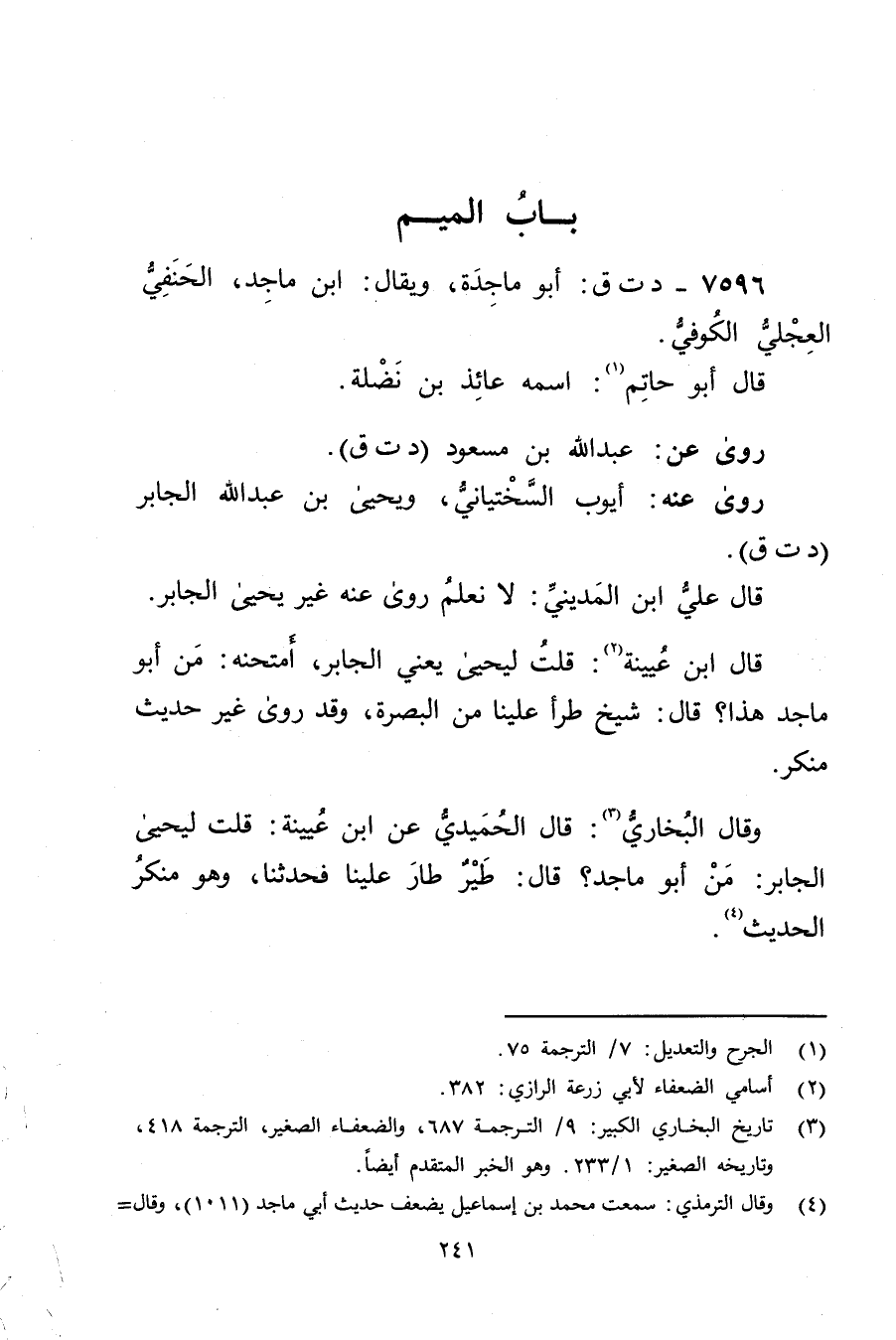 (4) وَقَال التِّرْمِذِيّ: سمعت مُحَمَّد بْن إِسْمَاعِيل يضعف حديث أَبِي ماجد (1011) ، وَقَال =