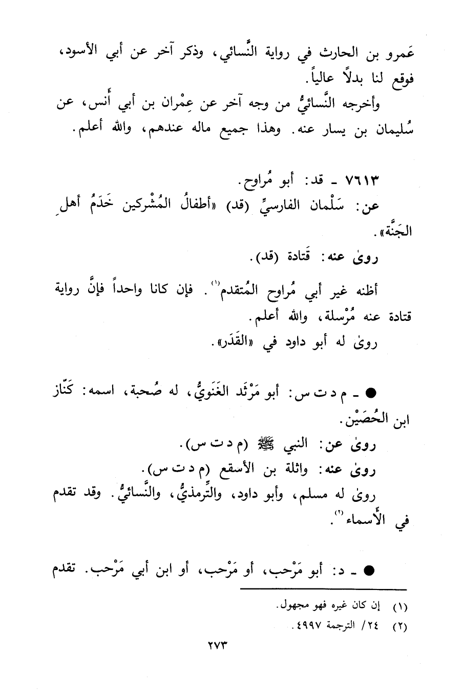 • م د ت س: أَبُو مرثد الغنوي، لهُ صُحبَةٌ، اسمه: كناز ابن الحصين.