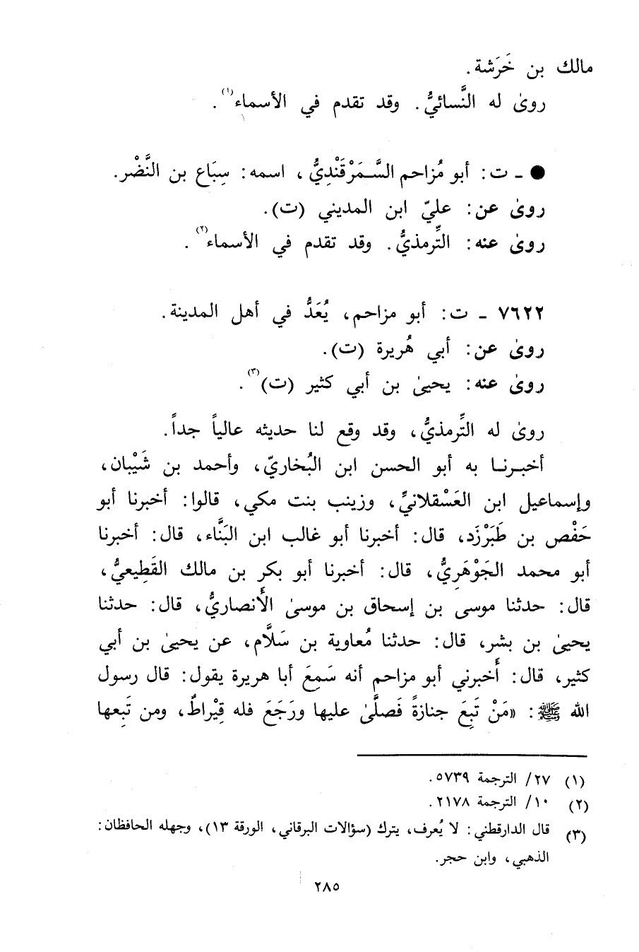 • ت: أَبُو مزاحم السمرقندي، اسمه: سباع بْن النضر.