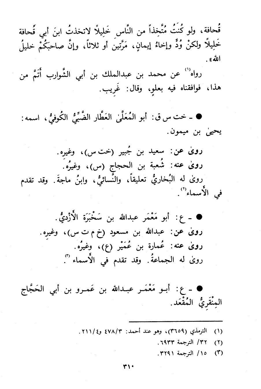 • خت س ق: أَبُو المعلى العطار الضبي الكوفي، اسمه: يحيى بْن ميمون.