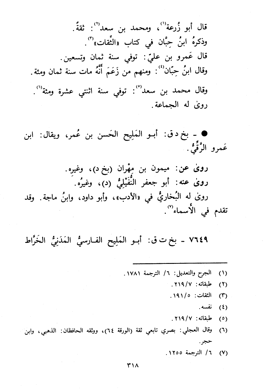 7649 - بخ ت ق: أَبُو المليح الفارسي المدني الخراط