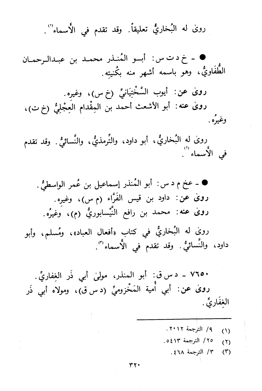 • خ د ت س: أَبُو المنذر مُحَمَّد بْن عبد الرحمن الطفاوي، وهو باسمه أشهر منه بكنيته.