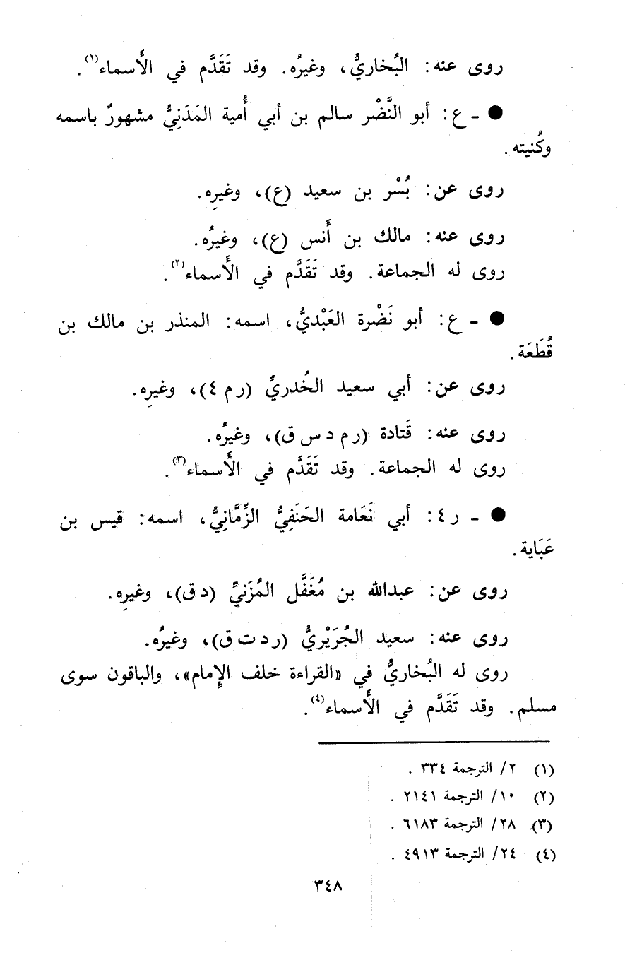 • ع: أَبُو النضر سالم بْن أَبي أمية المدني مشهور باسمه وكنيته.