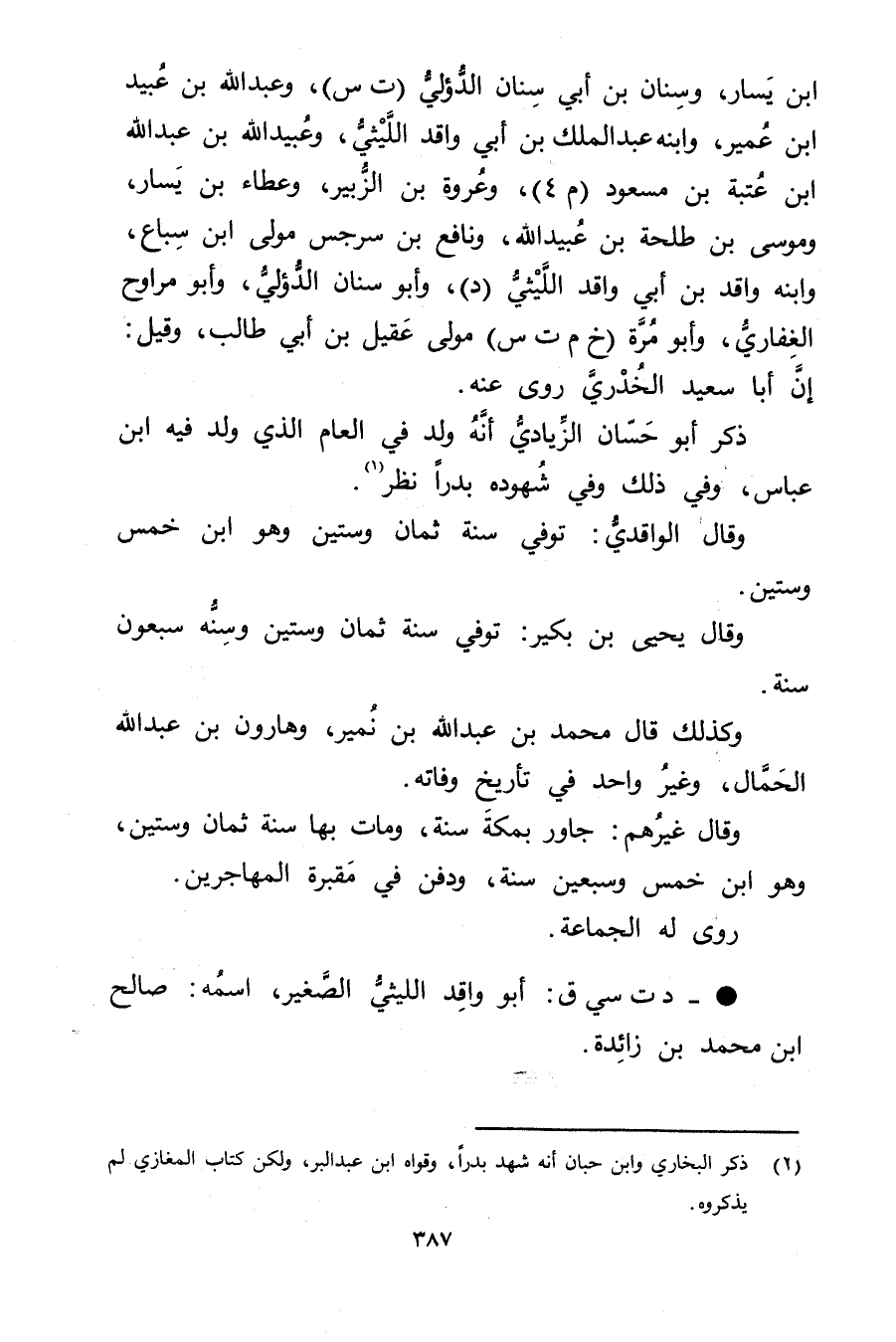 • د ت سي ق: أَبُو واقد الليثي الصغير، اسمه: صالح ابن محمد بن زائدة.