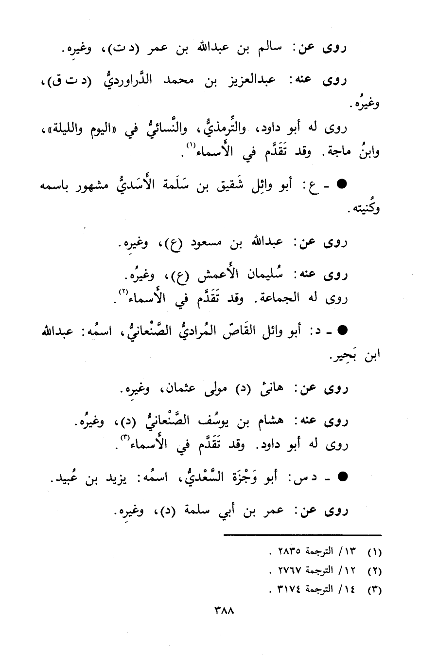 • ع: أَبُو وائل شقيق بْن سلمة الأسدي مشهور باسمه وكنيته.