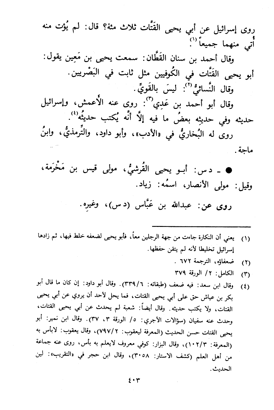 روى إسرائيل عَن أَبِي يحيى القتات ثلاث مئة؟ قال: لم يؤت مِنْهُ أتي منهما جميعا (1) .