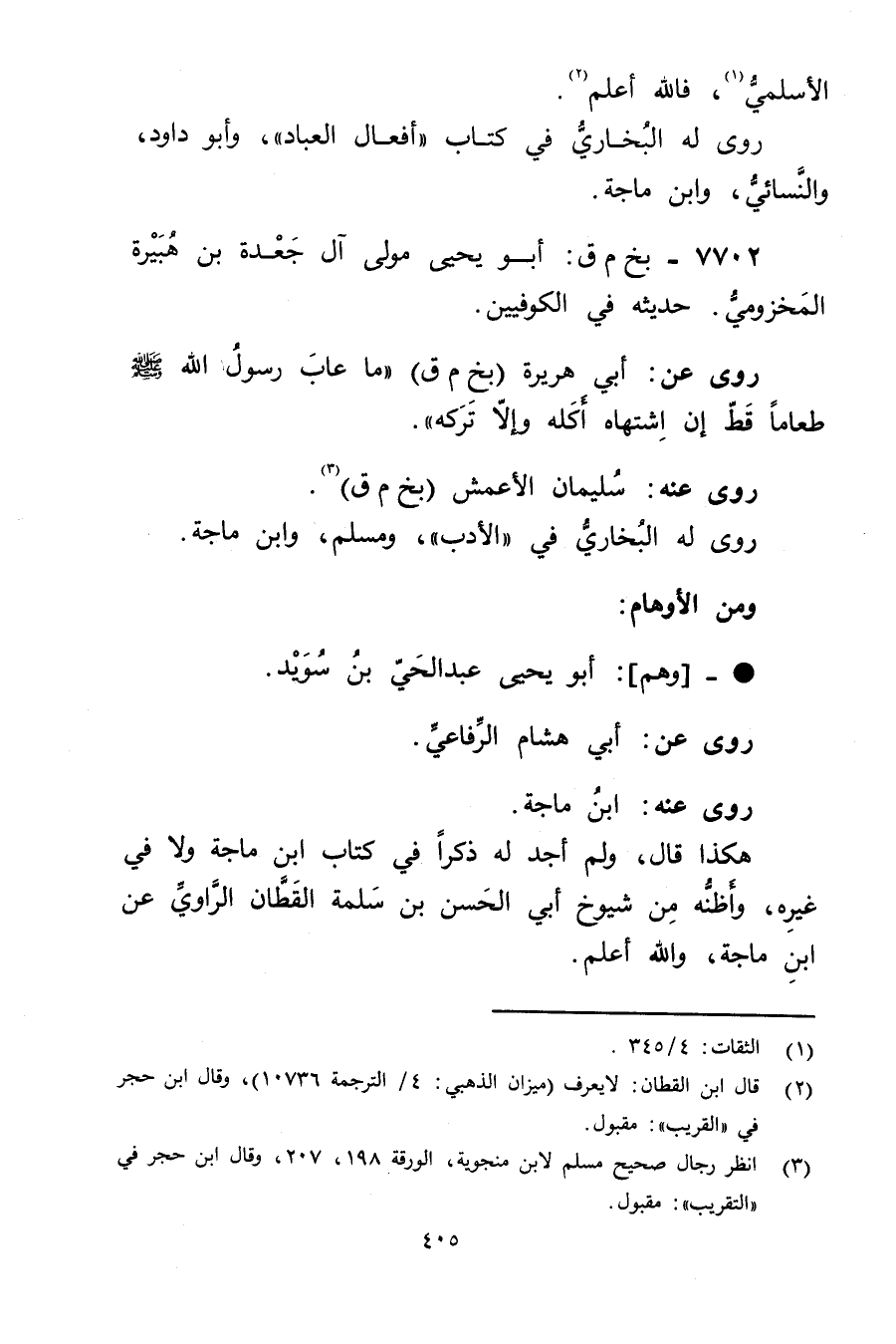• (وهم) : أبويحيى عبد الحي بن سويد.