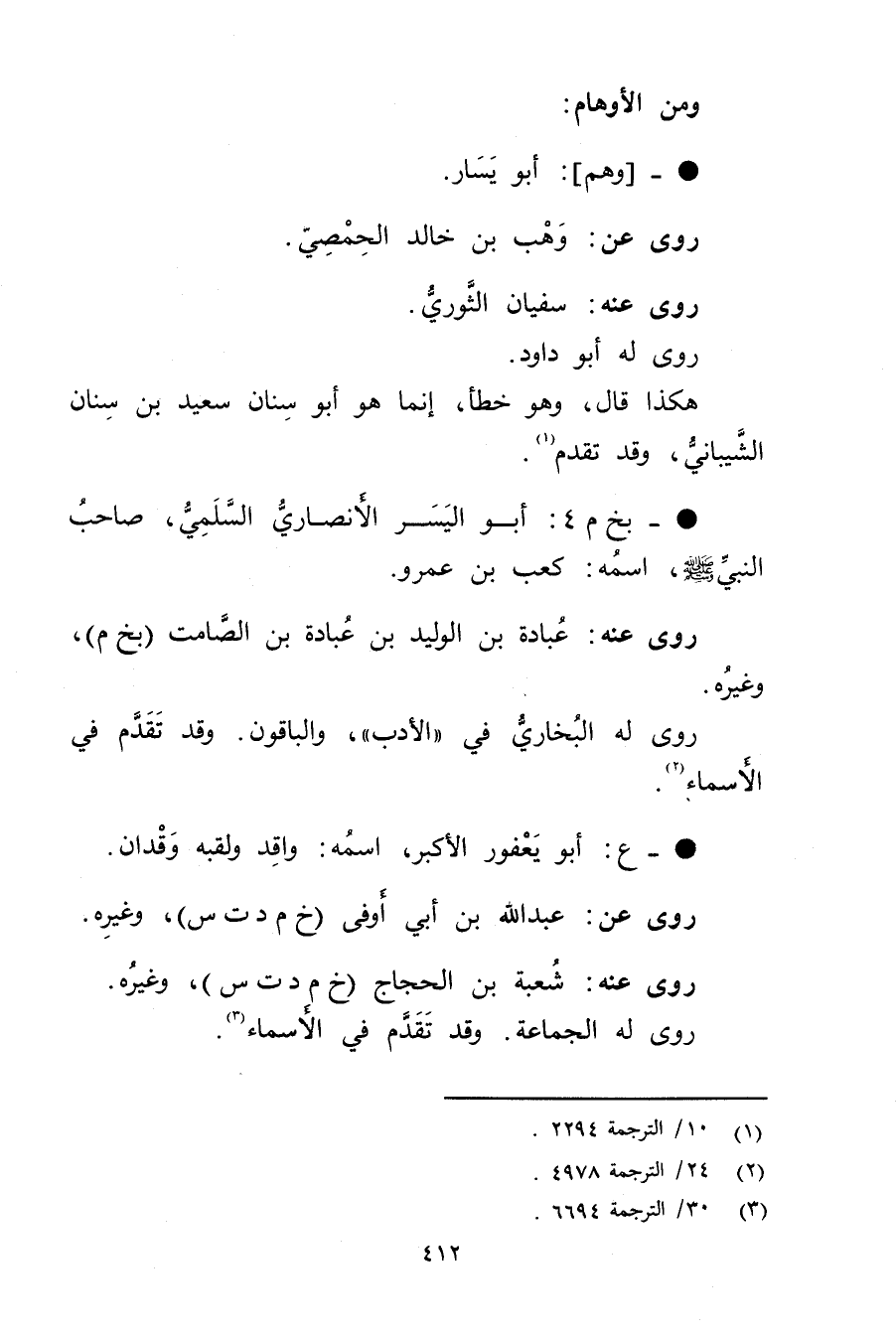 • بخ م 4: أَبُو اليسر الأَنْصارِيّ السلمي، صاحب النبي صلى الله عليه وسلم، اسمه: كعب بْن عَمْرو.