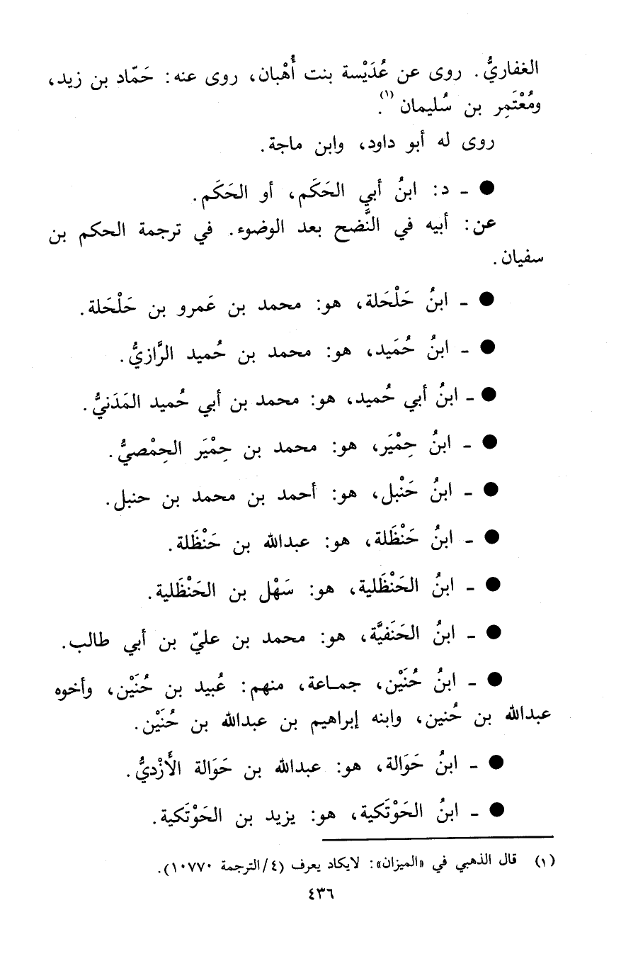 • ابن حنين، جماعة، منهم: عُبَيد بْن حنين، وأخوه عَبد اللَّه بْن حنين، وابنه إِبْرَاهِيم بْن عَبد اللَّه بْن حنين.