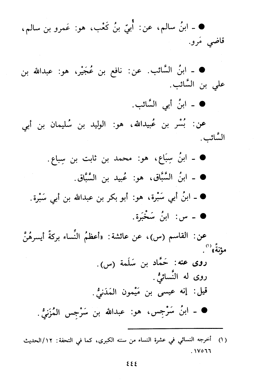 (1) أخرجه النَّسَائي في عشرة النساء من سننه الكبرى، كما في التحفة: 12 / الحديث 17566.
