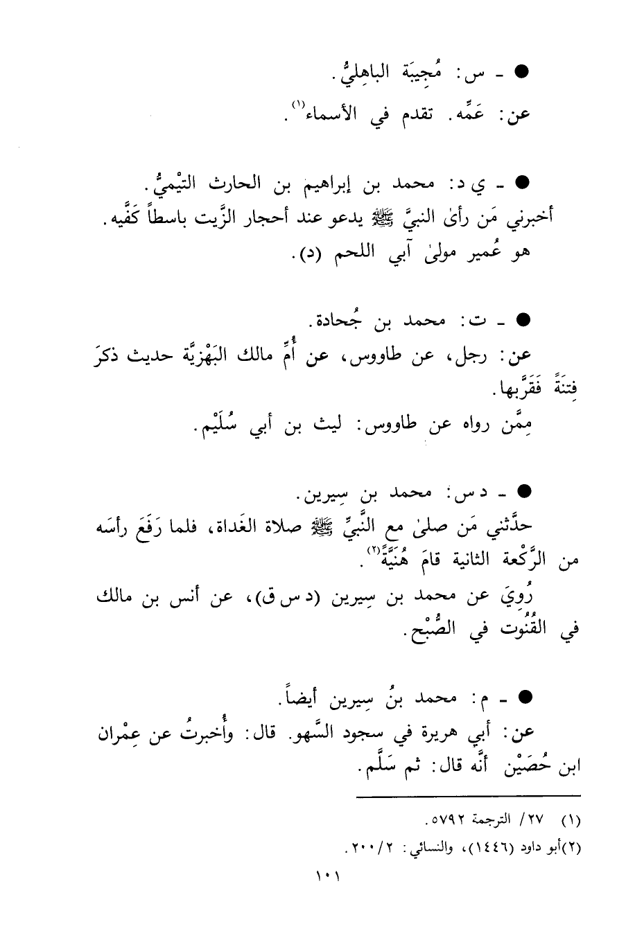 روي عن محمد بن سيرين (د س ق) ، عَنْ أنس بْن مالك في القنوت في الصبح.