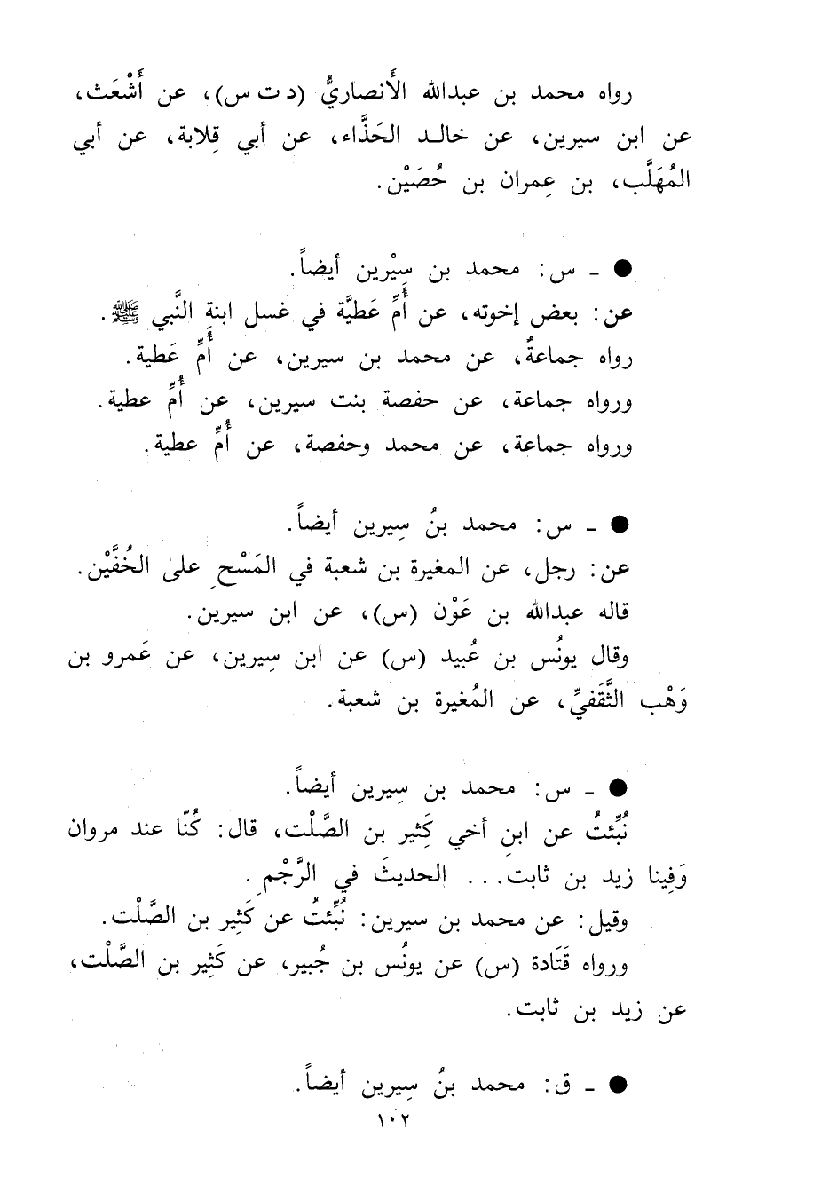 رواه محمد بن عَبد الله الأَنْصارِيّ (د ت س) ، عن أشعث، عن ابْن سيرين، عن خَالِدٍ الْحَذَّاءِ، عَن أَبِي قِلابَةَ، عَن أبي المهلب، بن مهران بن حصين.