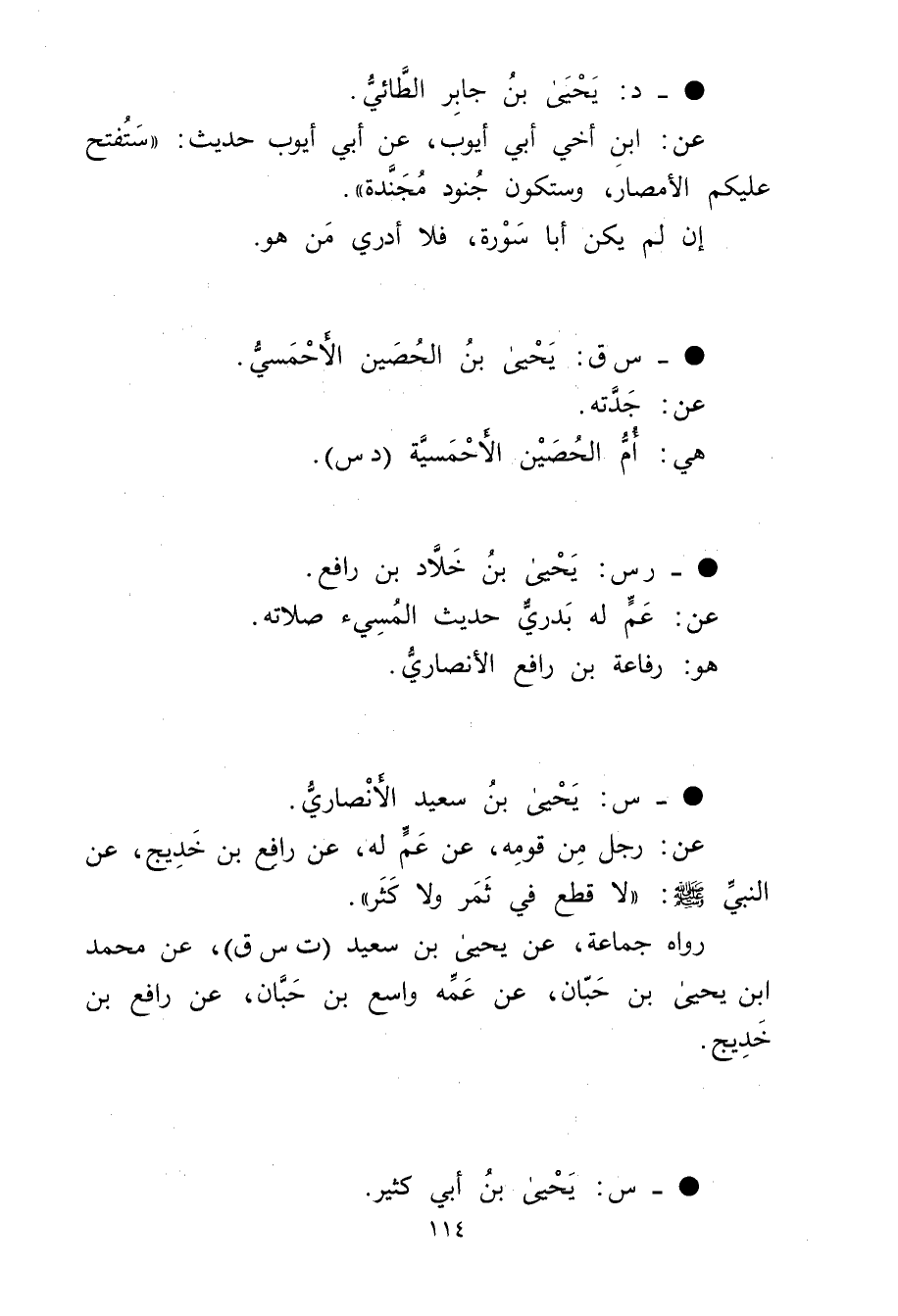 • س: يحيى بن سَعِيد الأَنْصارِيّ.