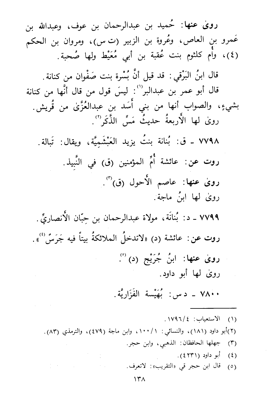 7798 - ق: بنانة بنت يزيد العبشمية، ويُقال: تبالة.