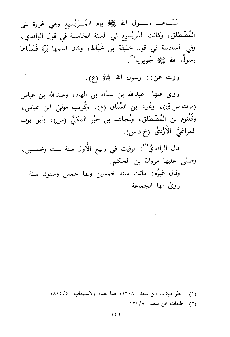 (1) انظر طبقات ابن سعد: 8 / 116 فما بعد، والاستيعاب: 4 / 1804.
