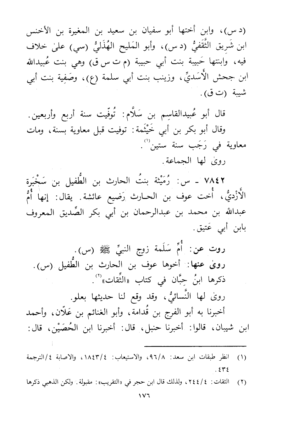 7842 - س: رميثة بنت الحارث بن الطفيل بن سخبرة الأزدي، أخت عوف بن الحارث رضيع عائشة، يُقَال: إنها أم عَبد الله بْن مُحَمَّد بْن عَبْد الرَّحْمَنِ بن أَبي بكر الصديق المعروف بابن أَبي عتيق.