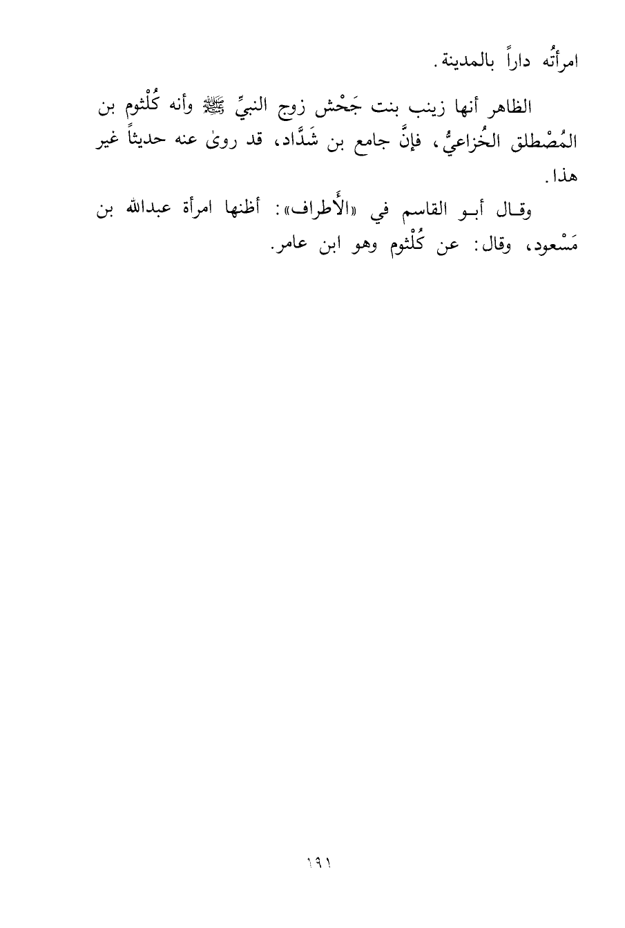 وَقَال أبو القاسم في " الأطراف": أظنها امرأة عَبد اللَّهِ بْن مسعود، وَقَال: عن كلثوم وهو ابن عامر.