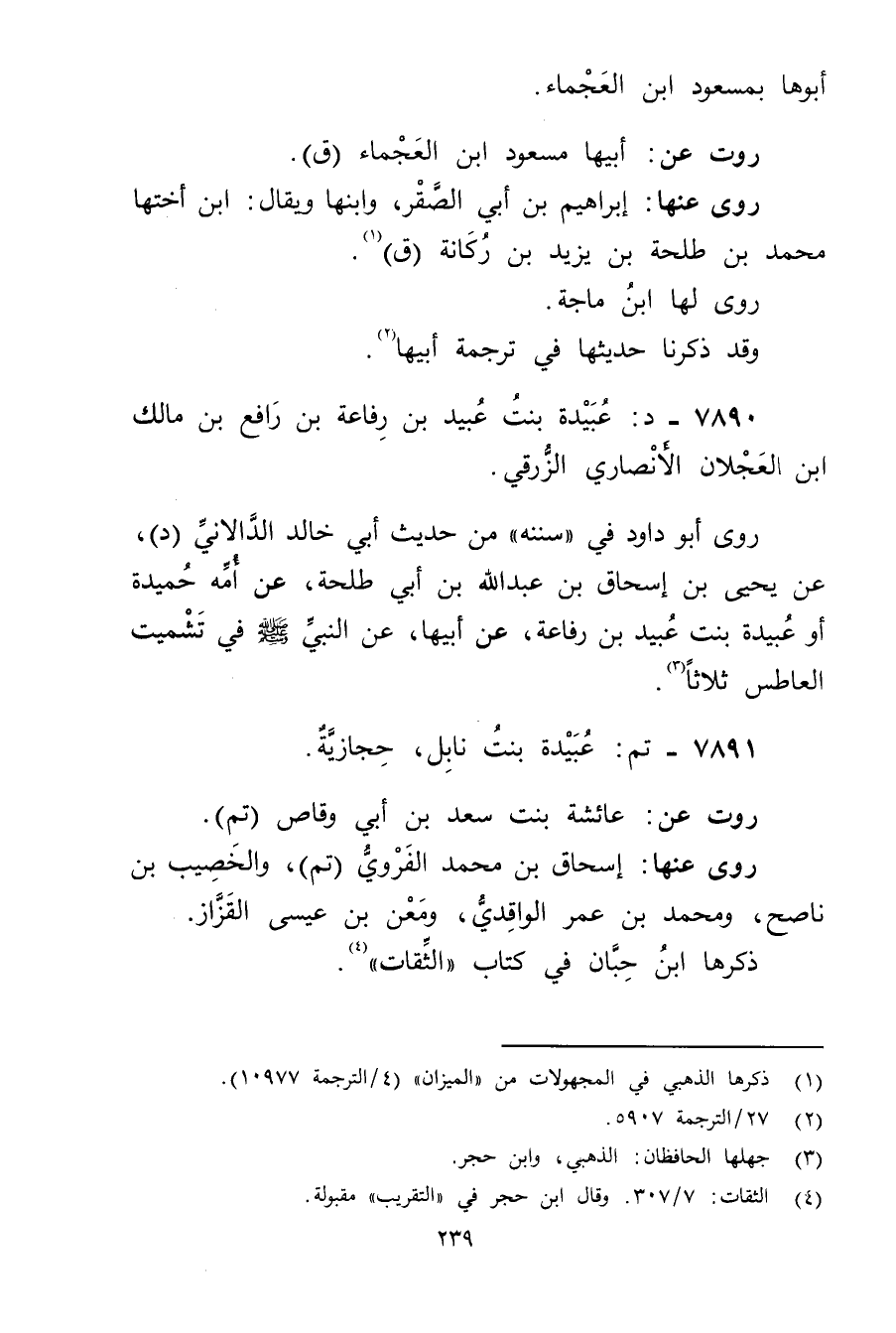 7890 - د: عُبَيدة بنت عُبَيد بن رفاعة بن رافع بن مالك ابن العجلان الأَنْصارِيّ الزرقي.