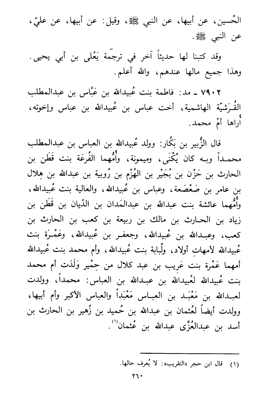 7902 - مد: فاطمة بنت عُبَيد الله بن عباس بن عبد المطلب القرشية الهاشمية، أخت عباس بن عُبَيد الله بن عباس وإخوته، أراها أم محمد.