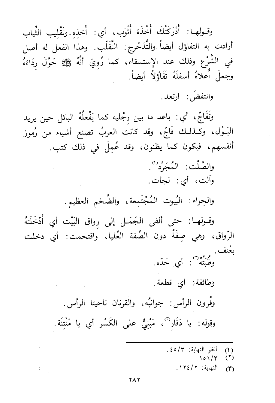 وتفاج، أي: باعد ما بين رجليه كما يفعله البائل حين يريد البول، وكذلك فاج، وقد كانت العرب تصنع أشياء من رموز أنفسهم، فيكون كما يظنون، وقد عمل في ذلك كتب.