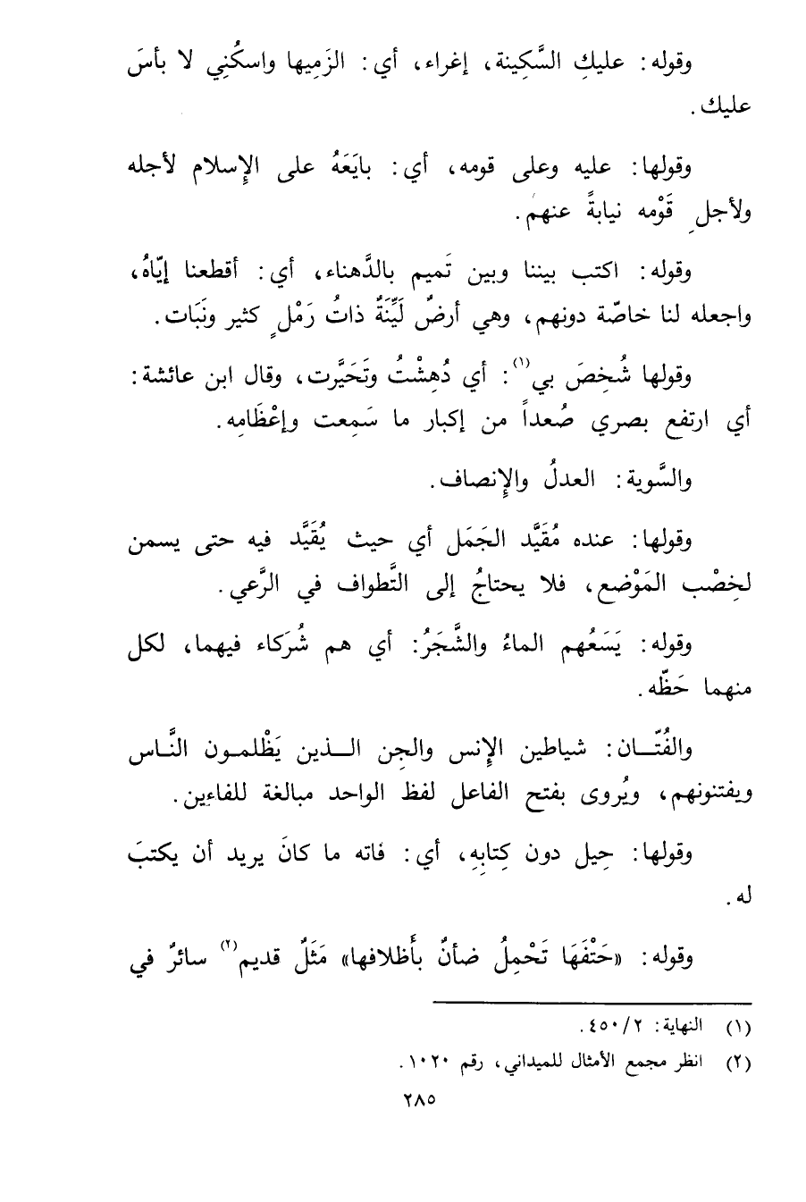 (2) انظر مجمع الامثال للميداني، رقم 1020.