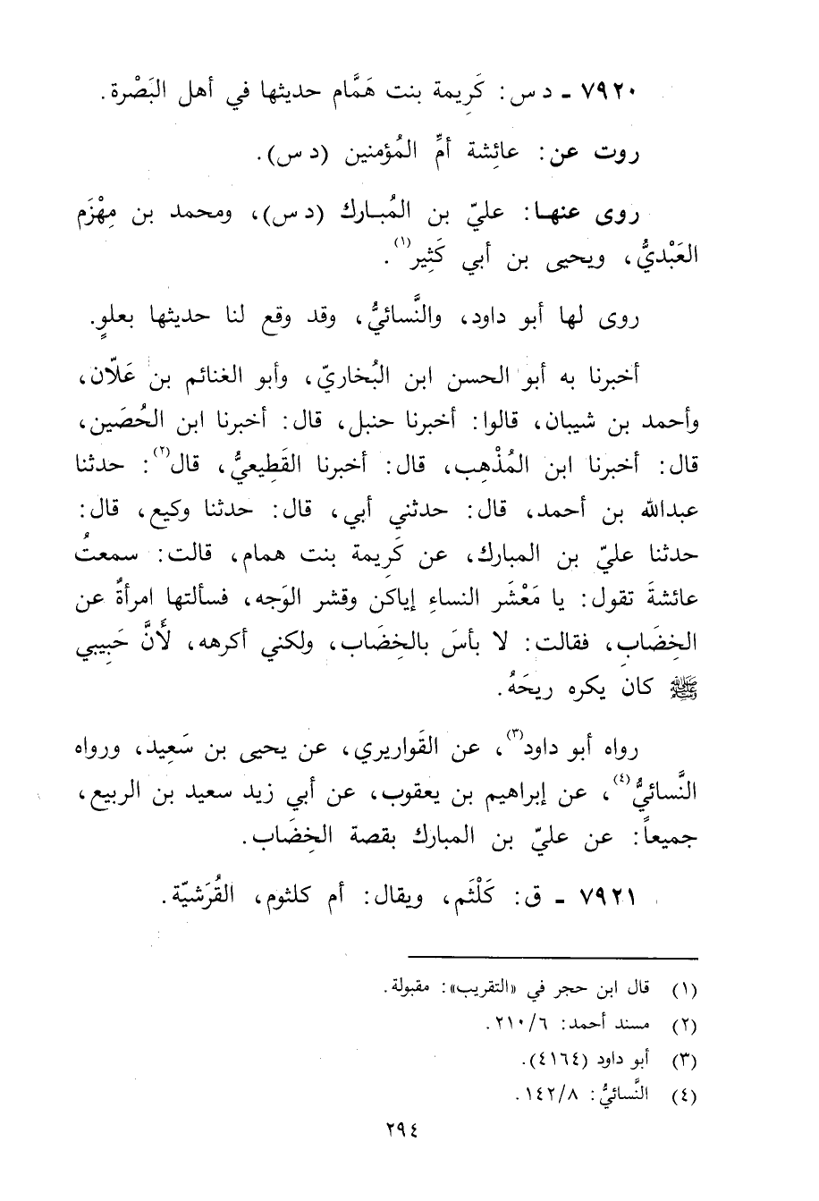 7920 - دس: كريمة بنت همام حديثها في أهل البصرة.