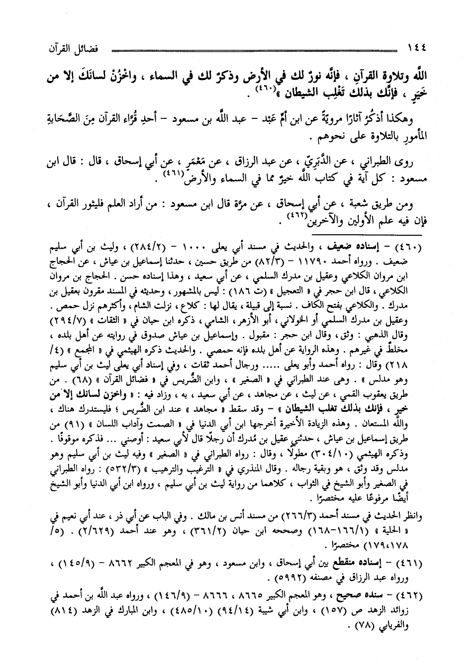 وهكذا أذكُرُ آثارًا مرويّةً عن ابن أمِّ عَبْد (8) أحدِ قُرَّاء القرآن مِنَ الصَّحَابةِ المأمورِ بالتلاوة على نحوهم (9)