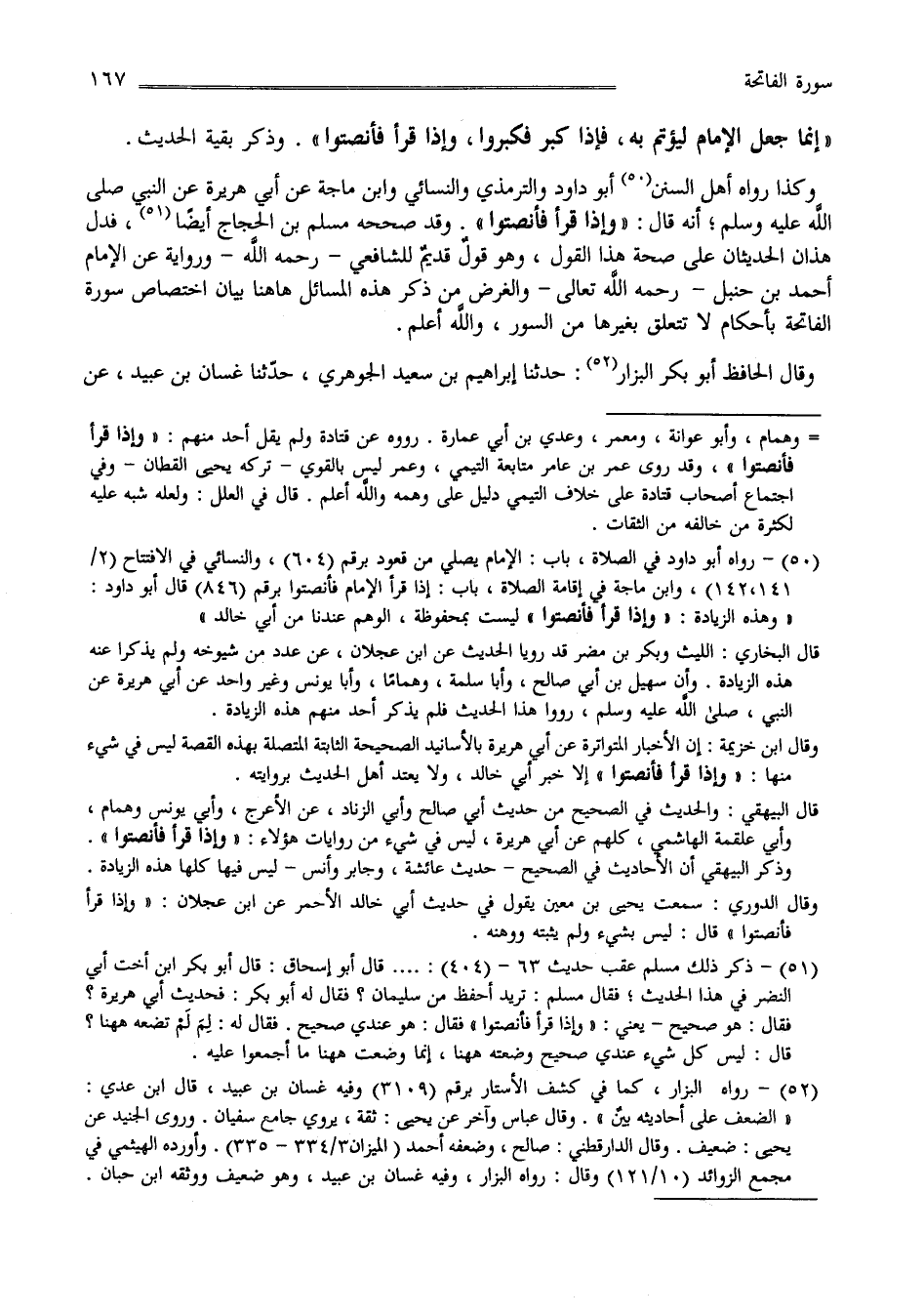 إِنَّمَا جُعِلَ الْإِمَام لِيُؤْتَمّ بِهِ فَإِذَا كَبَّرَ فَكَبِّرُوا وَإِذَا قَرَأَ فَأَنْصِتُوا " وَذَكَرَ بَقِيَّة الْحَدِيث وَهَكَذَا رَوَاهُ بَقِيَّة أَهْل السُّنَن أَبُو دَاوُدَ وَالتِّرْمِذِيّ وَالنَّسَائِيّ وَابْن مَاجَهْ عَنْ أَبِي هُرَيْرَة عَنْ النَّبِيّ صَلَّى اللَّه عَلَيْهِ وَسَلَّمَ أَنَّهُ قَالَ : " وَإِذَا قَرَأَ فَأَنْصِتُوا " وَقَدْ صَحَّحَهُ مُسْلِم بْن الْحَجَّاج أَيْضًا فَدَلَّ هَذَانِ الْحَدِيثَانِ عَلَى صِحَّة هَذَا الْقَوْل وَهُوَ قَوْل قَدِيم لِلشَّافِعِيِّ رَحِمَهُ اللَّه وَاَللَّه أَعْلَم .