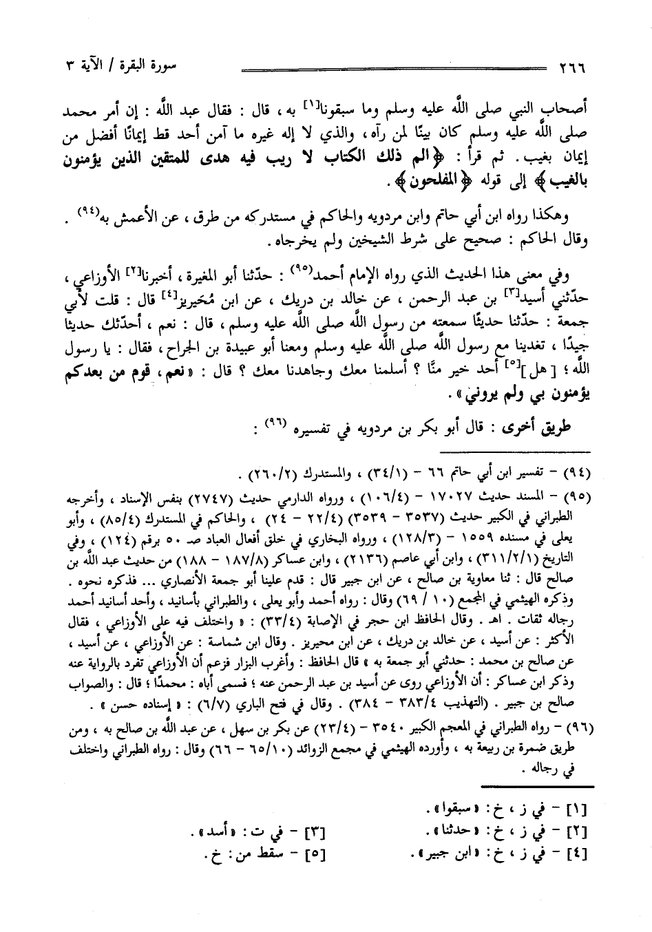 أَصْحَاب النَّبِيّ صَلَّى اللَّه عَلَيْهِ وَسَلَّمَ وَمَا سَبَقُونَا بِهِ فَقَالَ عَبْد اللَّه إِنَّ أَمْر مُحَمَّد صَلَّى اللَّه عَلَيْهِ وَسَلَّمَ كَانَ بَيِّنًا لِمَنْ رَآهُ وَاَلَّذِي لَا إِلَه غَيْره مَا آمَنَ أَحَد قَطُّ إِيمَانًا أَفْضَل مِنْ إِيمَان بِغَيْبٍ ثُمَّ قَرَأَ " الم ذَلِكَ الْكِتَاب لَا رَيْب فِيهِ هُدًى لِلْمُتَّقِينَ الَّذِينَ يُؤْمِنُونَ بِالْغَيْبِ - إِلَى قَوْله - الْمُفْلِحُونَ " وَهَكَذَا رَوَاهُ اِبْن أَبِي حَاتِم وَابْن مَرْدَوَيْهِ وَالْحَاكِم فِي مُسْتَدْرَكه مِنْ طُرُق عَنْ الْأَعْمَش بِهِ وَقَالَ الْحَاكِم صَحِيح عَلَى شَرْط الشَّيْخَيْنِ وَلَمْ يُخَرِّجَاهُ .