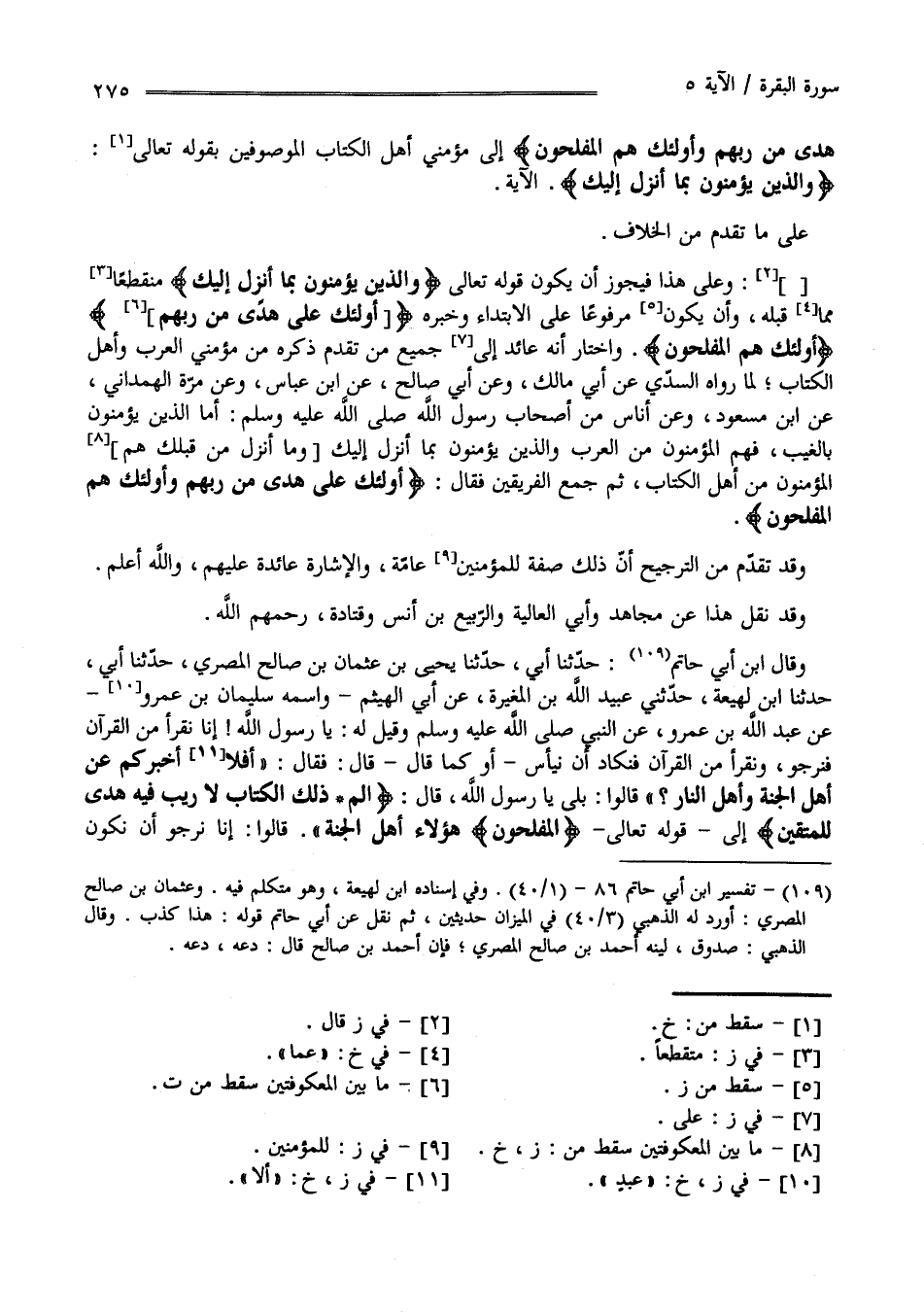هُدًى مِنْ رَبّهمْ وَأُولَئِكَ هُمْ الْمُفْلِحُونَ إِلَى مُؤْمِنَيْ أَهْل الْكِتَاب الْمَوْصُوفِينَ بِقَوْلِهِ تَعَالَى " وَاَلَّذِينَ يُؤْمِنُونَ بِمَا أُنْزِلَ إِلَيْك " الْآيَة عَلَى مَا تَقَدَّمَ مِنْ الْخِلَاف.