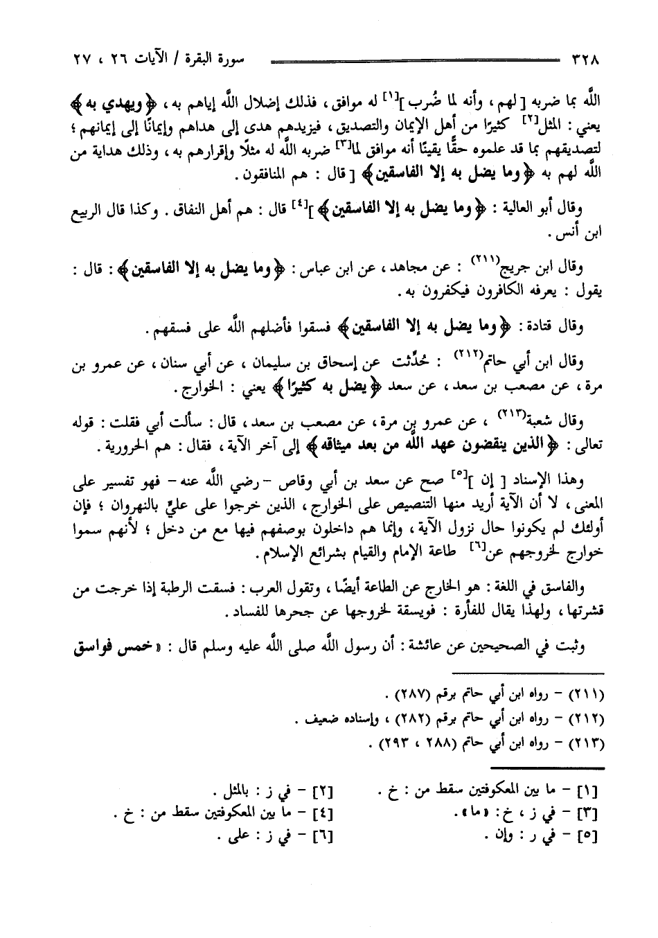 وَقَالَ اِبْن أَبِي حَاتِم : حَدَّثَنَا أَبِي عَنْ إِسْحَاق بْن سُلَيْمَان عَنْ أَبِي سِنَان عَنْ عَمْرو بْن مُرَّة عَنْ مُصْعَب بْن سَعْد عَنْ سَعْد " يُضِلّ بِهِ كَثِيرًا " يَعْنِي الْخَوَارِج .