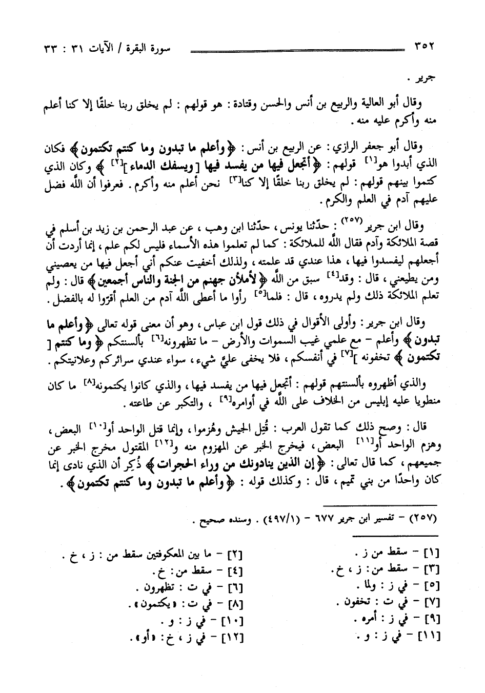 جَرِير وَقَالَ أَبُو الْعَالِيَة وَالرَّبِيع بْن أَنَس وَالْحَسَن وَقَتَادَة هُوَ قَوْلهمْ لَمْ يَخْلُق رَبّنَا خَلْقًا إِلَّا كُنَّا أَعْلَم مِنْهُ وَأَكْرَم عَلَيْهِ مِنْهُ : وَقَالَ أَبُو جَعْفَر الرَّازِيّ عَنْ الرَّبِيع بْن أَنَس " وَأَعْلَم مَا تُبْدُونَ وَمَا كُنْتُمْ تَكْتُمُونَ " فَكَانَ الَّذِي أَبْدَوْا هُوَ قَوْلهمْ : أَتَجْعَلُ فِيهَا مَنْ يُفْسِد فِيهَا وَيَسْفِك الدِّمَاء .