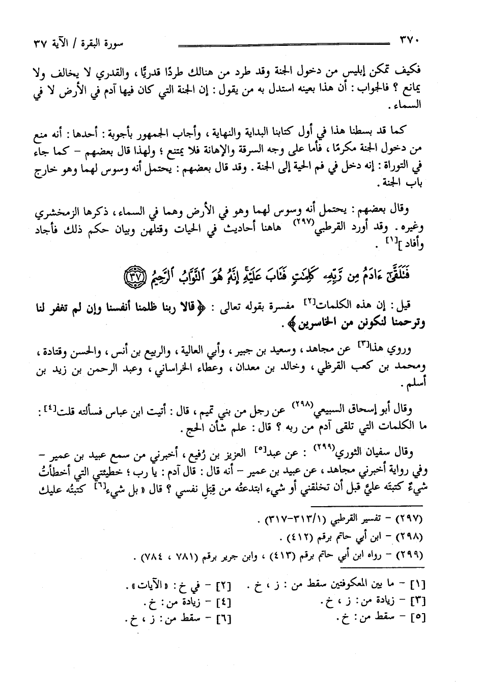 فَتَلَقَّى آَدَمُ مِنْ رَبِّهِ كَلِمَاتٍ فَتَابَ عَلَيْهِ إِنَّهُ هُوَ التَّوَّابُ الرَّحِيمُ (37)