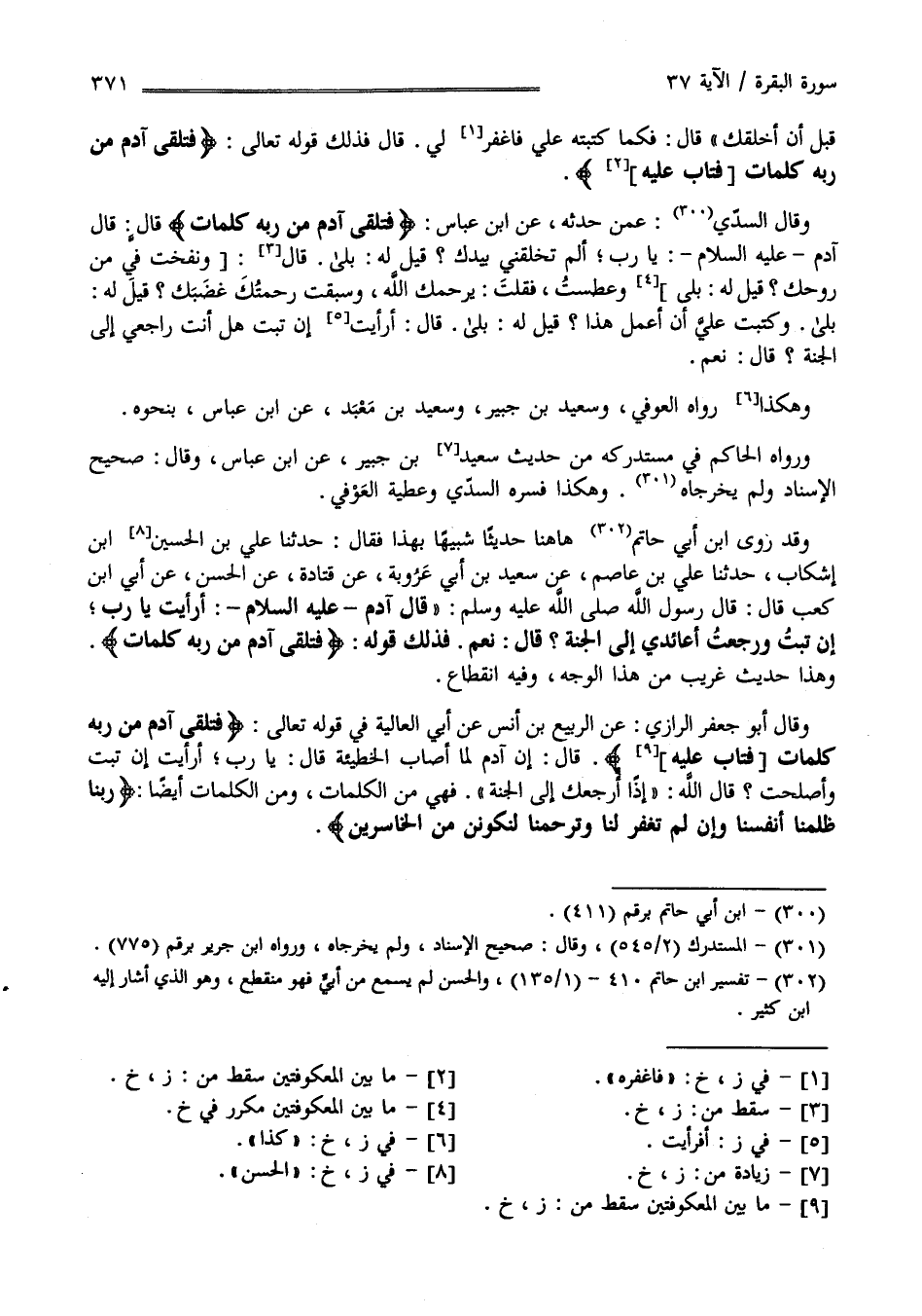 قَالَ إِنَّ آدَم لَمَّا أَصَابَ الْخَطِيئَة قَالَ أَرَأَيْت إِنْ تُبْت يَا رَبّ وَأَصْلَحْت ؟ قَالَ اللَّه " إِذًا أُدْخِلك الْجَنَّة " فَهِيَ الْكَلِمَات وَمِنْ الْكَلِمَات أَيْضًا " رَبّنَا ظَلَمْنَا أَنْفُسنَا وَإِنْ لَمْ تَغْفِر لَنَا وَتَرْحَمنَا لَنَكُونَنَّ مِنْ الْخَاسِرِينَ "