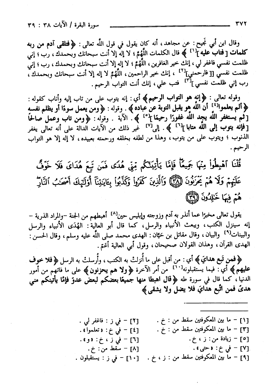 يَقُول تَعَالَى مُخْبِرًا عَمَّا أَنْذَرَ بِهِ آدَم وَزَوْجَته وَإِبْلِيس حِين أَهْبَطَهُمْ مِنْ الْجَنَّة وَالْمُرَاد الذُّرِّيَّة أَنَّهُ سَيُنْزِلُ الْكُتُب وَيَبْعَث الْأَنْبِيَاء وَالرُّسُل كَمَا قَالَ أَبُو الْعَالِيَة الْهُدَى الْأَنْبِيَاء وَالرُّسُل وَالْبَيِّنَات وَالْبَيَان وَقَالَ مُقَاتِل بْن حَيَّان : الْهُدَى مُحَمَّد صَلَّى اللَّه عَلَيْهِ وَسَلَّمَ وَقَالَ الْحَسَن الْهُدَى الْقُرْآن وَهَذَانِ الْقَوْلَانِ صَحِيحَانِ .